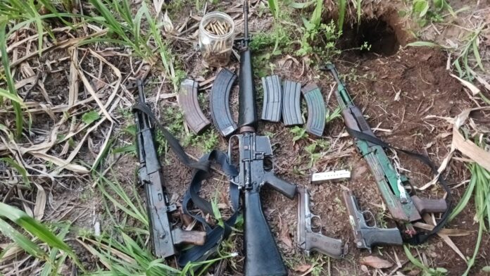“Tras el trabajo de inteligencia desarrollado en las últimas horas, hemos incautado varias armas al grupo armado desmantelado en Cabañas. En riberas del río Lempa, entre el límite de Cabañas y Chalatenango”, dijo la PNC.