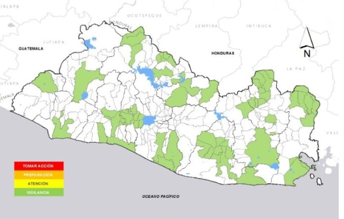 «Existe la probabilidad baja de caída de ramas, árboles y vallas publicitarias de medianas dimensiones por vientos débiles a moderados en municipios de la cadena volcánica y zona costera del país», dijo el MARN.