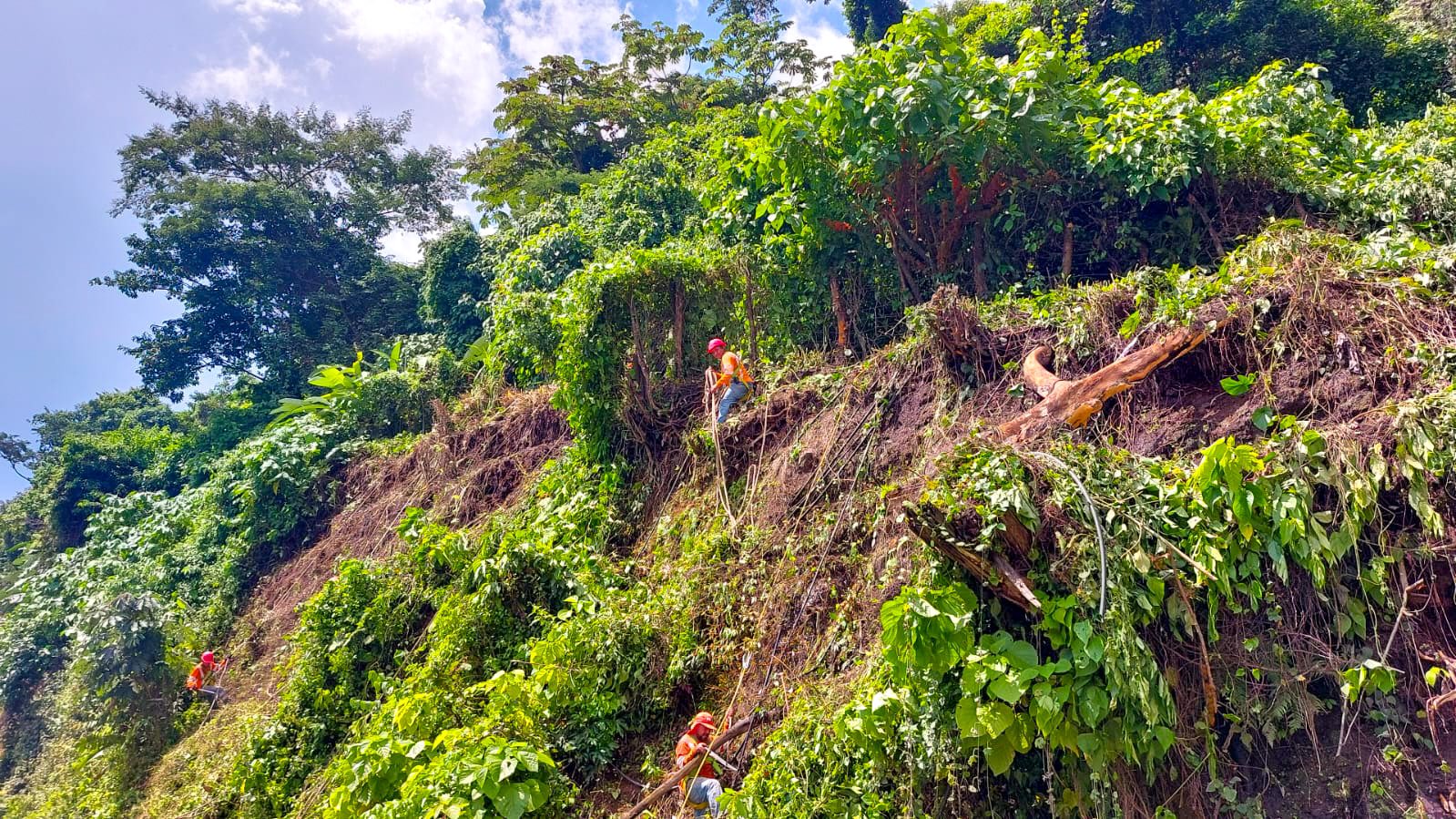 “Seguimos trabajando en obras de mitigación en carretera Panamericana, a la altura del Parque Recreativo Los Chorros. Realizamos control de vegetación y poda de árboles para reducir los riesgos de derrumbes”, dijo FOVIALITO.
