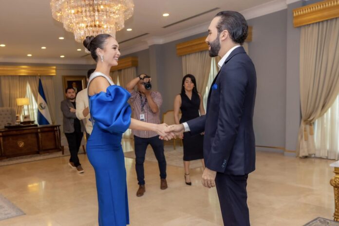 En su travesía por El Salvador, la ganadora del Certamen 2022 de Miss Universo R’Bonney Nola, se reunió con el presidente de la República, Nayib Bukele, junto al productor ejecutivo de Miss Universo, Nick Teplitz.