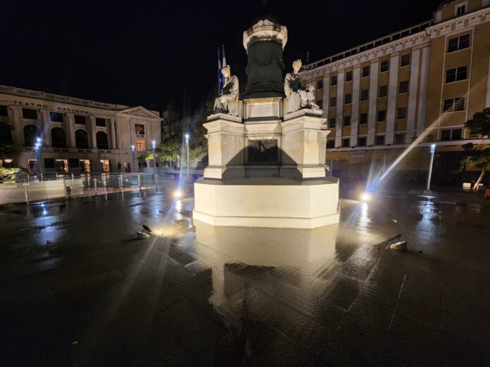 “Durante la noche de ayer y la madrugada de hoy, en las plazas del Centro Histórico de San Salvador avanzamos con la limpieza, instalación de estructuras dañadas y últimos detalles de iluminación”, indicó la cartera del MOP.