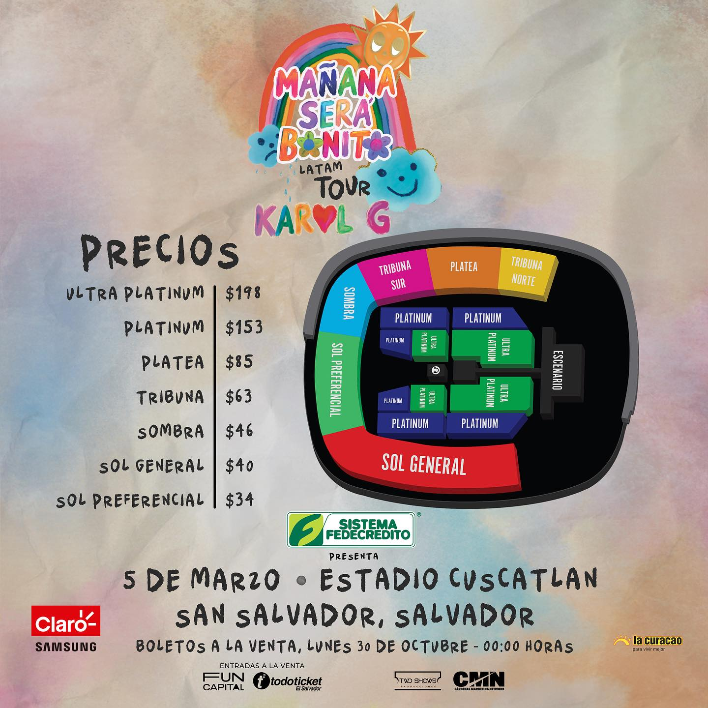 Two Show, la productora encargada del evento, informó en sus redes sociales que las entradas para el concierto de Karol G será a partir del 30 de octubre a las cero horas.