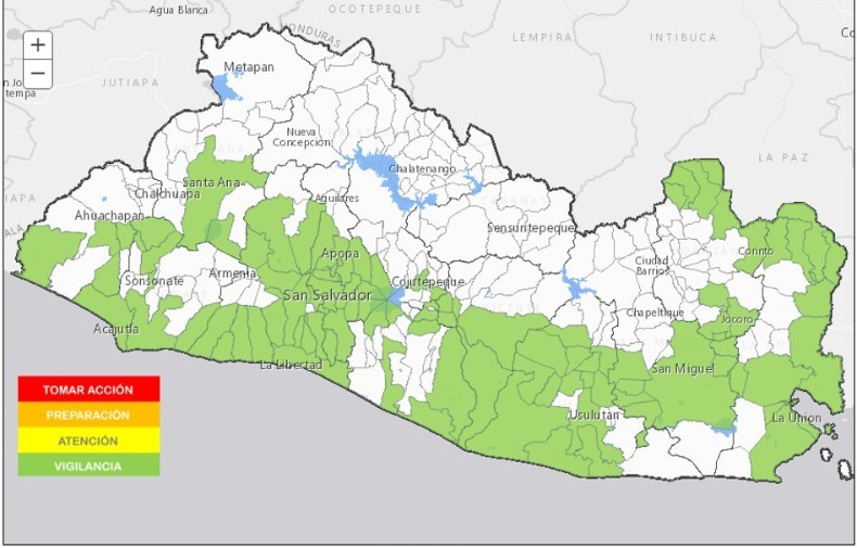 La cartera del MARN indicó que habrá inundaciones urbanas y crecidas repentinas en municipios de la franja costera central y zona oriental del país, además de permanencia de anegamientos en la cuenca del río Grande de San Miguel y zona costera.