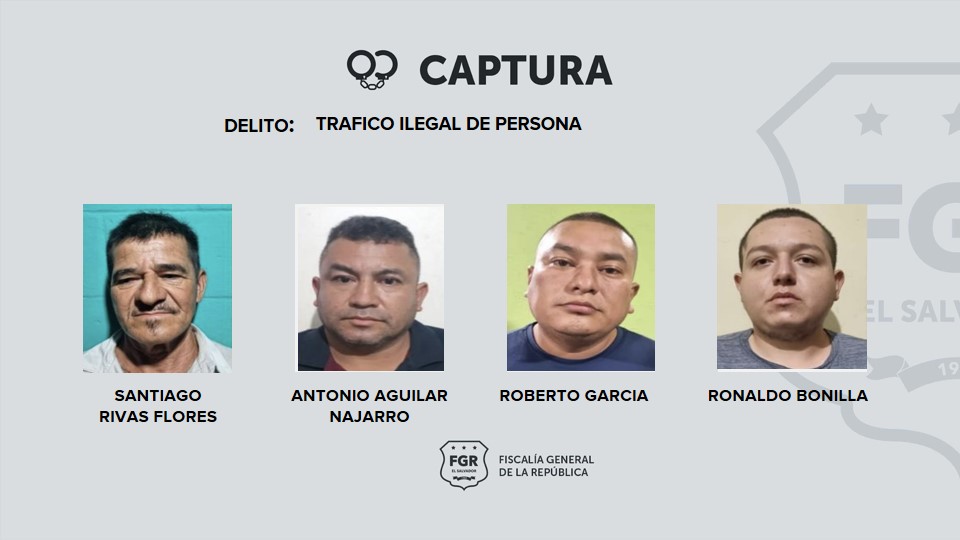 La Fiscalía General de la República (FGR), manifestó que con la coordinación de la Policía Nacional Civil se realizó la captura de 3 miembros de una banda de traficantes de personas.