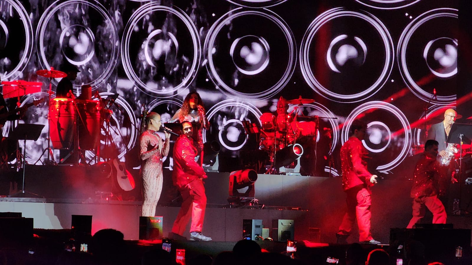 Un poco después de las 10:00 pm las llamas se apoderaron del escenario y una Olga Tañón envuelta en un traje rojo se robó los gritos del público con un show espectacular de músicos y bailarines.