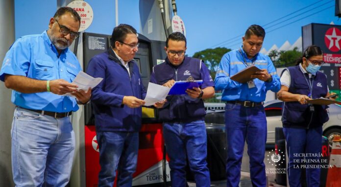 El presidente de la Defensoría del Consumidor, Ricardo Salazar, y el director de la Dirección General de Energía, Hidrocarburos y Minas (DGEHM), Henry Müller, verificaron los nuevos precios de los combustibles en estaciones de servicio de Texaco 25 avenida Norte y Uno Los Héroes.