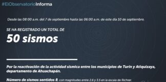 Reportan 50 sismos en Turín y Atiquizaya