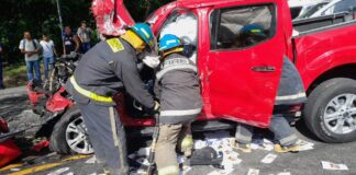 Bomberos atienden accidente de tránsito en desvío del municipio de Lolotique