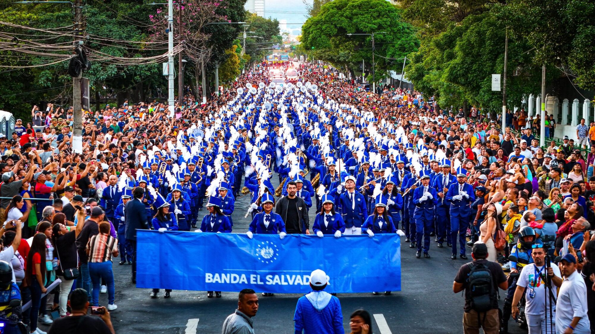 Los 600 niños y jóvenes que conforman la Banda El Salvador ofrecieron un espectacular desfile que partió de la plaza al Divino Salvador del Mundo hasta el Centro Histórico de San Salvador.
