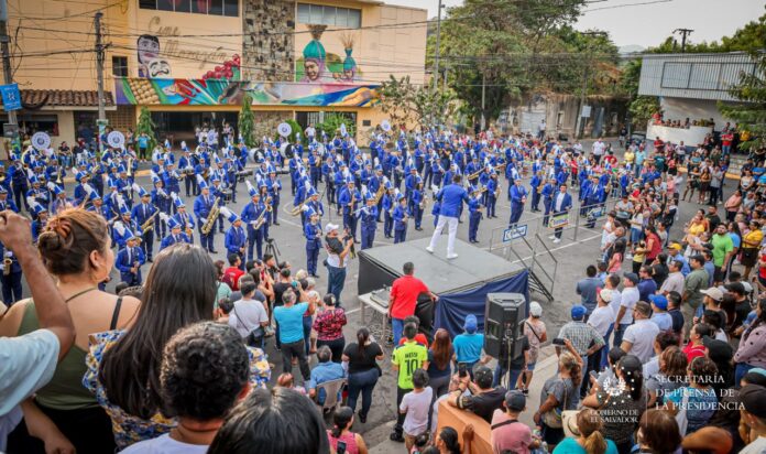 De acuerdo con las declaraciones de la Secretaría de Prensa, la música se apoderó del centro de San Francisco Gotera, lugar donde los miembros de la Banda El Salvador interpretan, con precisión, las piezas de su repertorio.