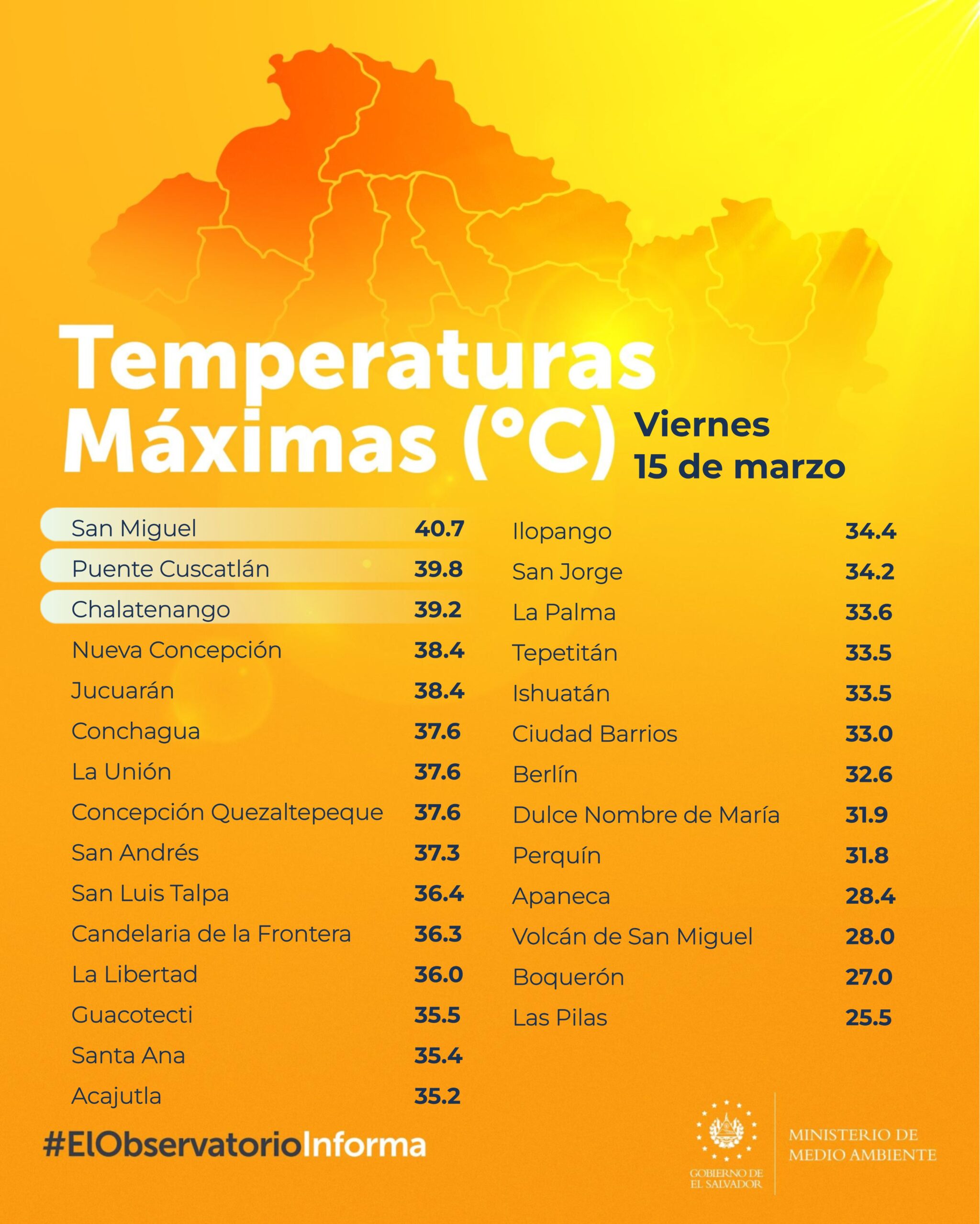 De acuerdo al ministerio, el pasado viernes se registró una temperatura extrema que sobrepasó los 40 grados Celsius en San Miguel, con registro de 41.8.