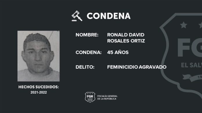 “La FGR logra que Ronald David Rosales Ortiz reciba una condena de 45 años de cárcel por quitarle la vida a su pareja, en el 2022”, dijo la Fiscalía General de la República.
