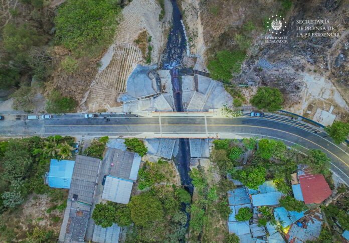 Este miércoles, el ministro de Obras Publicas, Romeo Herrera, junto con el director del FOVIAL, Alex Beltrán, entregó un nuevo puente y las obra de protección que realizaron en la avenida El Bálsamo, en Soyapango.