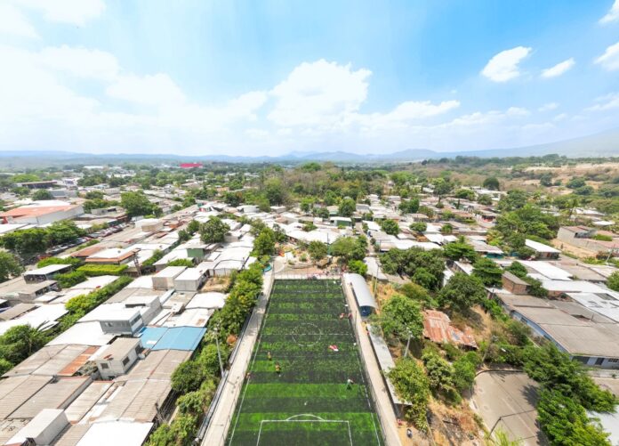 “Avanzamos con la actividades en el espacio público de la urbanización María Elena, en Apopa, una de las 100 canchas que estamos interviniendo en los 14 departamentos”, indicó la Cartera de Obras Públicas en X.