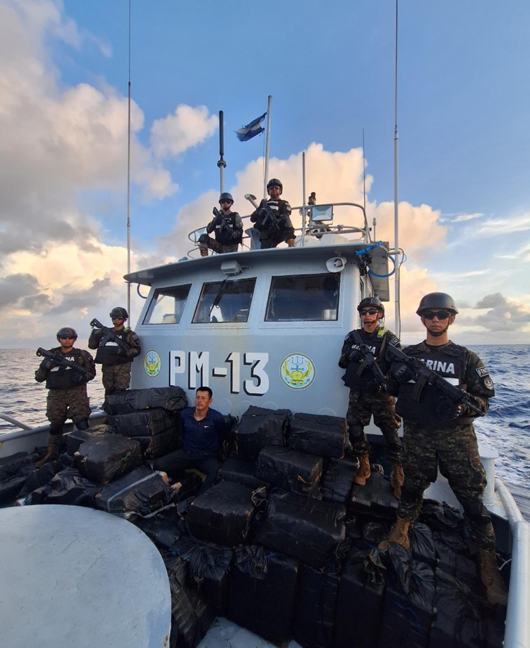 “Menos de cinco días después de otra gran incautación de droga, nuestra Marina Nacional interceptó otra lancha a 882 millas náuticas (1,633 kilómetros) al suroeste de la Bocana El Cordoncillo, Estero de Jaltepeque, con 2 tripulantes de nacionalidad ecuatoriana”, dijo el mandatario.