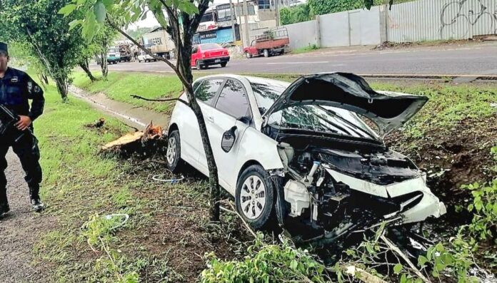 “El conductor de un vehículo perdió el control y chocó contra un árbol sobre el km 21 de la carretera Panamericana, a la altura de San Pedro Perulapán, Cuscatlán. La víctima resultó lesionada y fue trasladada a un hospital. Nuestros agentes se encuentran en la zona”, dijo la PNC.