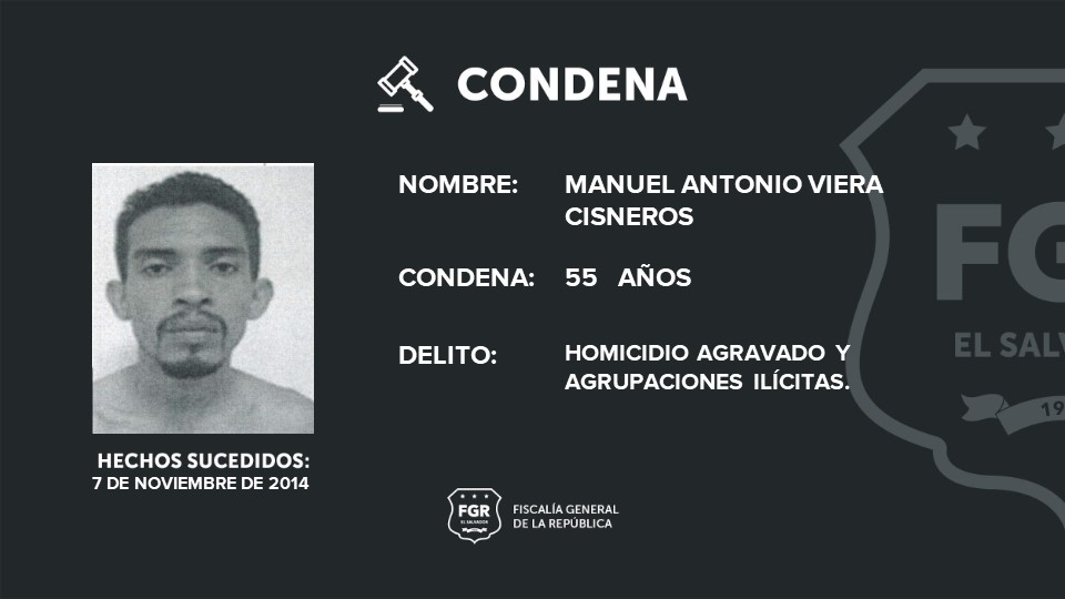 Entre los condenados están Manuel Antonio Viera Cisneros y Denis Roberto González Sánchez que recibieron 55 años de prisión, cada uno, por el delito de homicidio agravado.