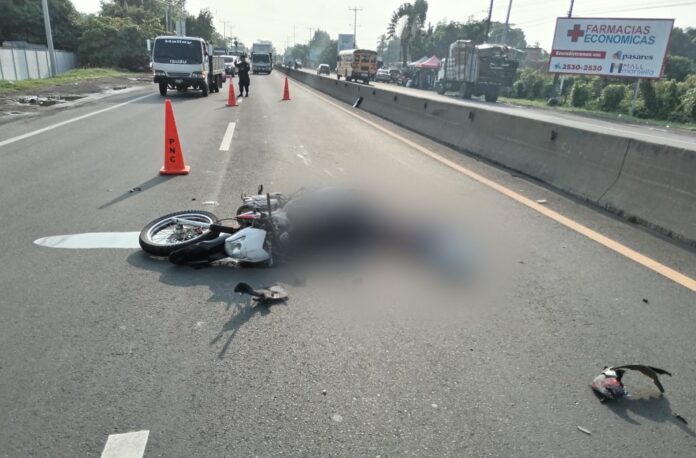La Policía Nacional Civil (PNC), informó que en el km 37 de la carretera Panamericana, jurisdicción de San Juan Opico, La Libertad, un aparatoso accidente de tránsito dejo la muerte de un motociclista.
