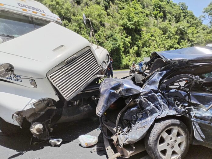 “No hay paso vehicular en la carretera de Oro, sentido de apopa a soyapago Preliminarmente una rastra impactó con otro vehículo, unidades de socorro en camino para rescatar a una víctima”, dijo la fuente de Comandos de Salvamento.