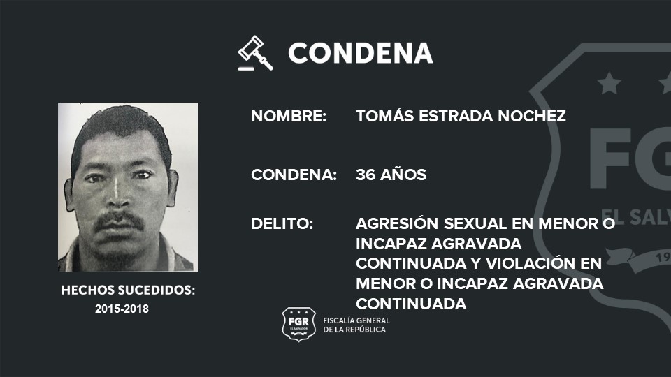 “Los hechos ocurrieron entre el 2012 y 2018. La condena fue impuesta por el Tribunal Segundo de Sentencia Santa Ana”, informó la FGR.