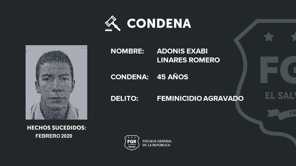 “Adonis Linares fue condenado a 45 años de cárcel por asesinar con arma blanca a su expareja. En febrero del 2020, este sujeto llegó a la casa de la víctima con quien mantuvo una relación anteriormente”, dijo la FGR.