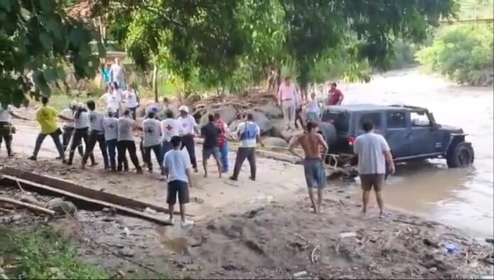 “En la tarde de este domingo voluntarios de las seccional de Aguilares y Guazapa trabajaron en la recuperación de un vehículo que fue arrastrado por una corriente laminar mientras cruzaba el río guaza”, dijo Cruz Roja en redes sociales.