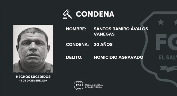 “Santos Ramiro Ávalos Vanegas ha sido condenado a 20 años de prisión por el delito de homicidio agravado”, dijo la FGR.
