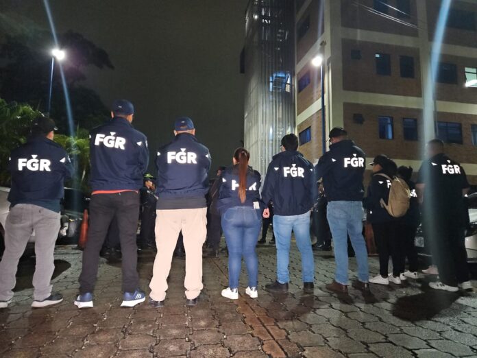 “Esta madrugada, la FGR ejecutó operativo en coordinación con PNC contra 6 personas, incluyendo abogados y notarios, acusados de expropiar a diferentes víctimas de sus inmuebles, valorados en $400,000.00”, dijo la Fiscalía en X.