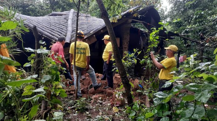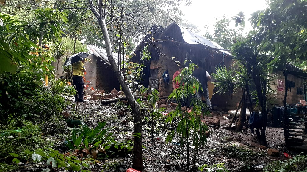 “Vivienda afectada en cantón planes primeros del distrito de Chinameca caserío el manzano donde habitan 8 personas entre ellos 3 niños nombre del propietario José Lucas Canales de 60 años de edad .les sugerimos evacuar la vivienda pero dijeron que solo los niños iban a llevar a otra vivienda”, dijo la fuente de Comandos de Salvamento.