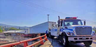 Retiran rastra que chocó con los barandales del paso a desnivel...