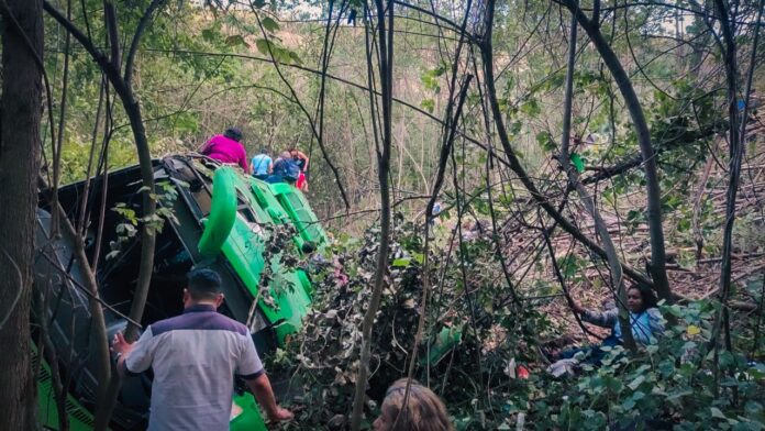 Elementos de la Cruz Verde informaron sobre un accidente de tránsito en el Km 76 de la Carretera Panamericana, sector de Quebrada Seca, tras que un autobús de la ruta 301 cayera a un barranco.