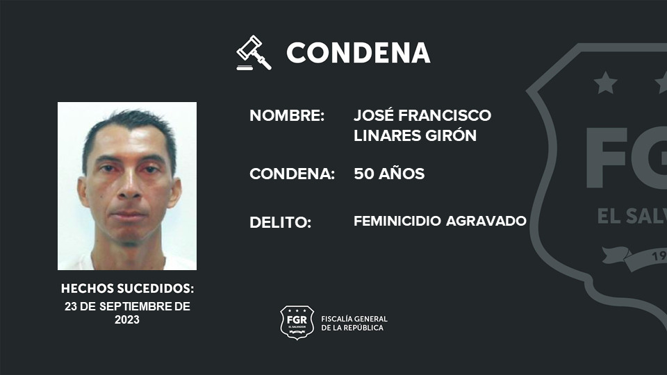“José Linares le quitó la vida a su expareja en septiembre de 2023, por este crimen la Fiscalía General de la República logró que sea condenado a 50 años de prisión”, dijo la FGR.