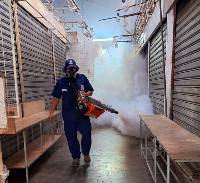“Hoy, la alcaldía de San Salvador Centro realizó una jornada de fumigación general en el mercado Central, sus oficinas administrativas y Centro de Desarrollo Infantil (CDI)”, mencionó la Comuna capitalina.