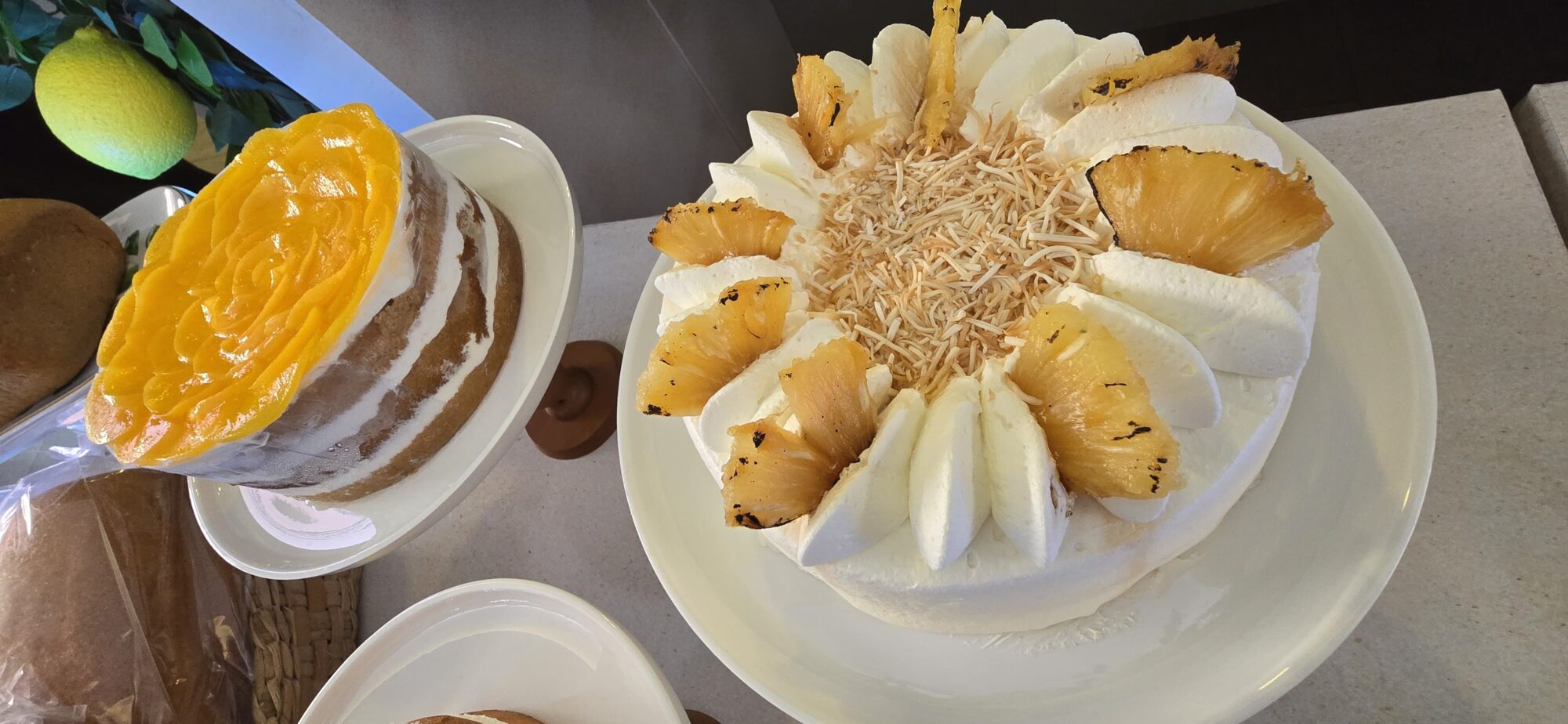 O las opciones de pasteleria, como el nuevo Pastel de Piña con Crema, elaborado con mascarpone y trozos de piña caramelizada, o los tan esperasos pasteles de melocotón ¡Ideal para el verano! Bizcocho húmedo de vainilla, relleno de crema con melocotón y decorado con melocotón fresco, perfectos para refrescar los días más calurosos.