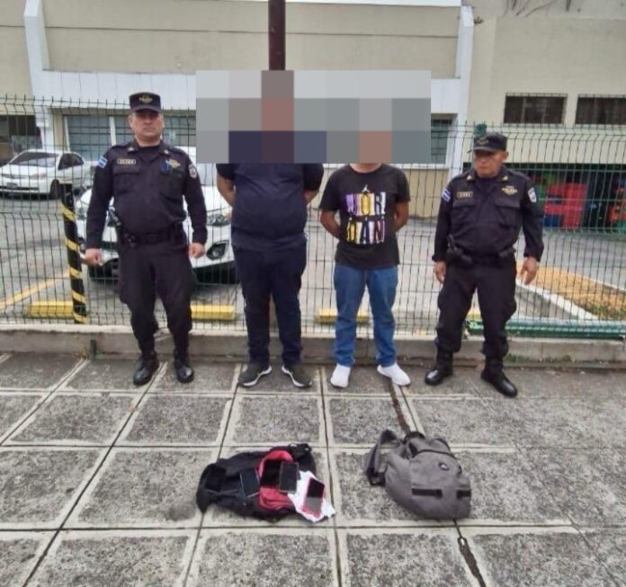 “Esta mañana capturamos a dos sujetos que hurtaron varios celulares a los pasajeros de un bus de la ruta 101 D, de Santa Tecla”, manifestó la PNC.