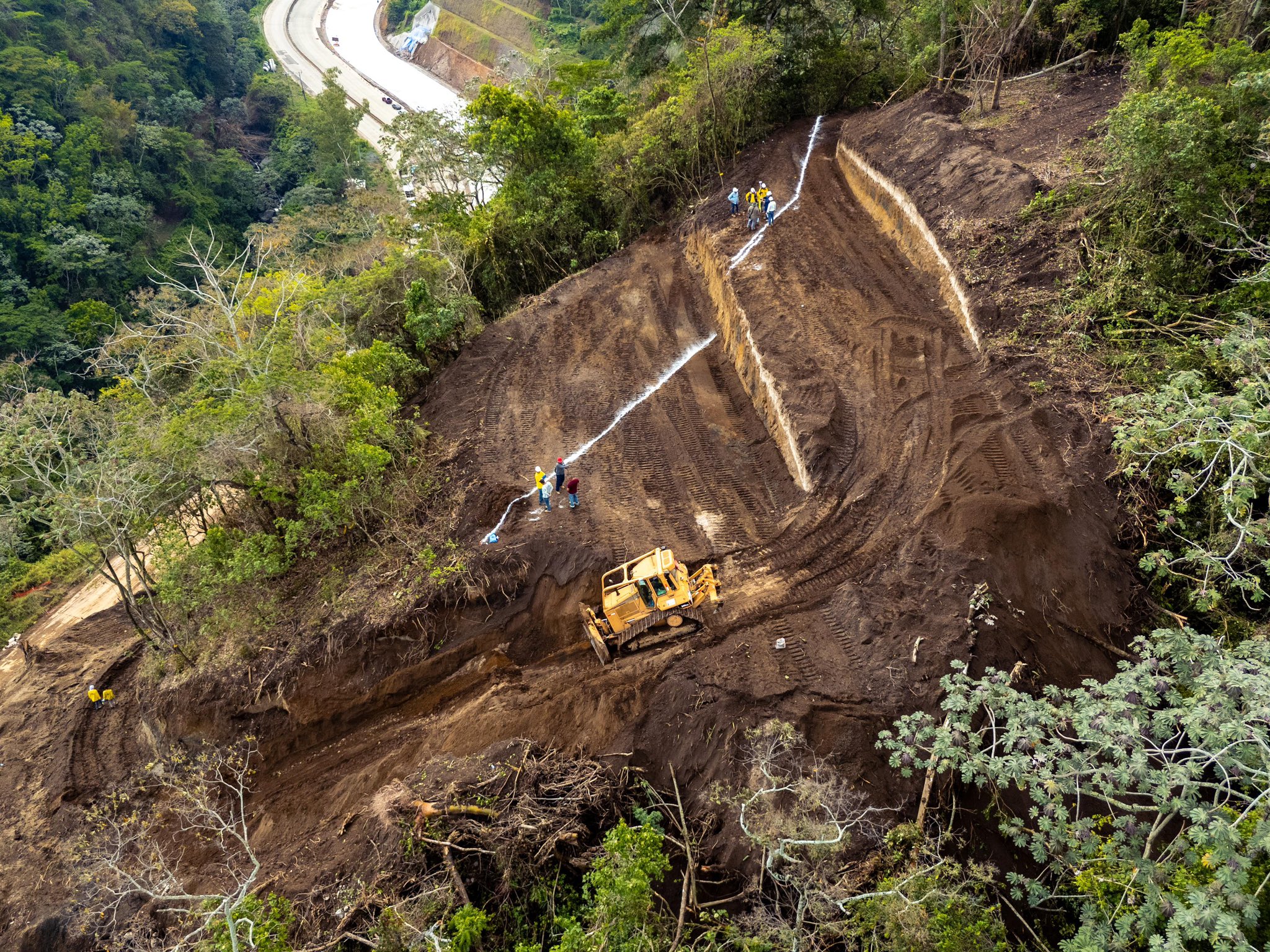 El funcionario dijo que están trabajando en la corona de uno de los siete taludes que hay en este trecho, a fin de desalojar material y bajarle a la pendiente, para que tenga una inclinación de aproximadamente 50 grados, con el propósito de estabilizarlo. Esto contempla otras obras adicionales como bermas, la construcción de derramaderos y drenajes.