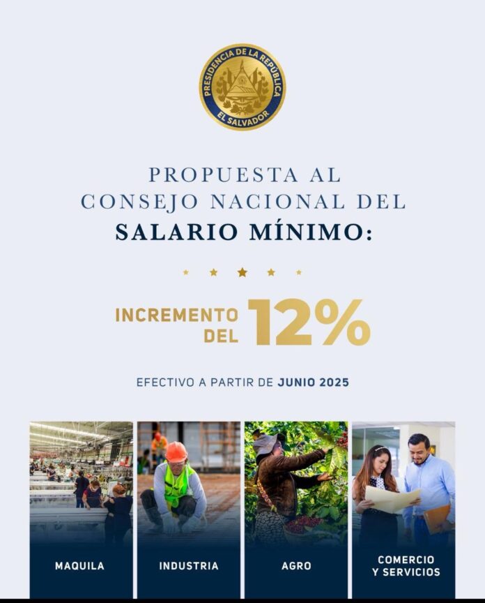 El Ministro de Trabajo, Rolando Castro, informó en sus redes sociales que el incremento del salario mínimo, que anunció el presidente Nayib Bukele, entrará en vigencia a partir del 1 de junio.