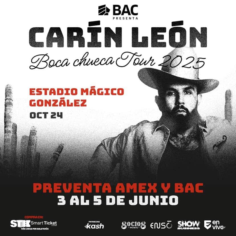 Para los amantes de la música regional mexicana, BAC anunció la preventa de las entras del concierto del artista Carín León quien regresa a El Salvador con el Boca Chueca Tour 2025.
