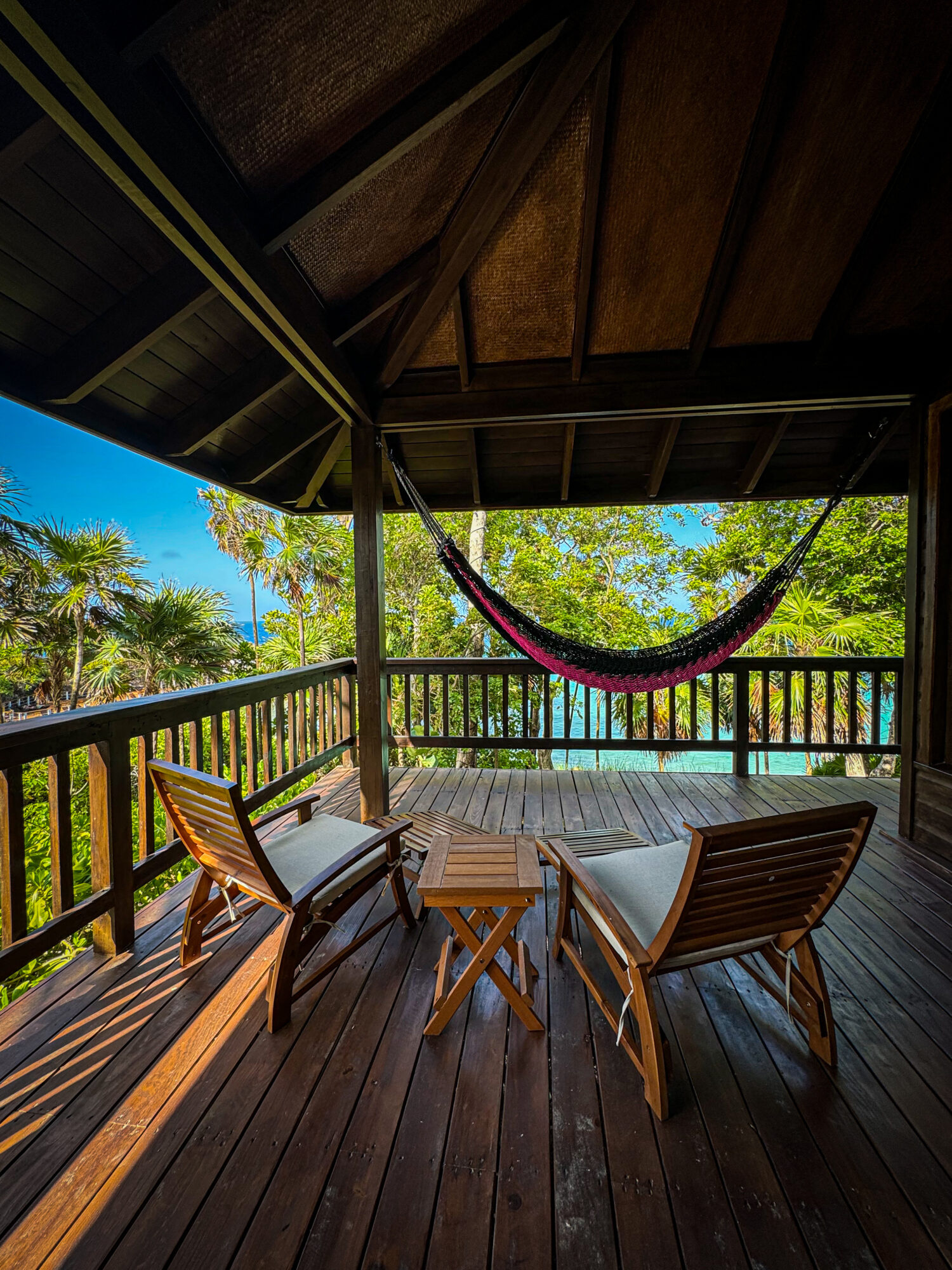 Quedarán encantando con las habitaciones debido a que tienen un diseño muy destacado hechas con madera y el toque de la vegetación te harán sentirte muy cómodo junto a su vista que es directamente al mar con una sintonia de paz.
