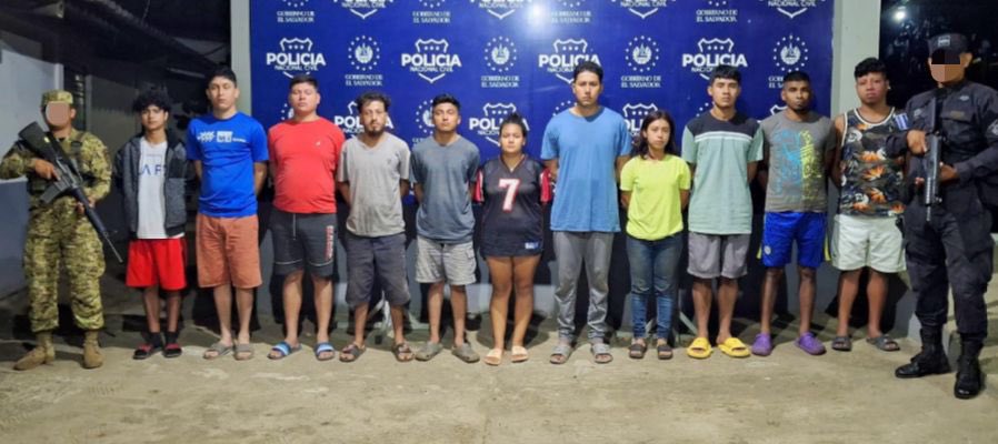 Los capturados son: Bryan Alexis Ortiz Alvarenga, alias “Leiva”, Edward Jonathan González Campos, alias “Albañil”, Ángel Stanley Sánchez Solorzano, alias “Flaco”, Néstor Isaías Calvio Cruz, alias “Chivo”, Evelin Lizeth Castaneda Cabeza, alias “La Cangreja”, Juan Carlos Escobar Aguilar, alias “Calona”, Beralia Abigail Santos Ruiz, alias “Pelo Rubio”, Daniel de Jesús Salazar, alias “Conejo”, Franklin Vladimir Gutiérrez Guzmán, alias “Tachi”, Ángel Javier Peñate Leonardo, alias “Roquero”, Cristian Alexander Hernández Castro, alias “Zope”