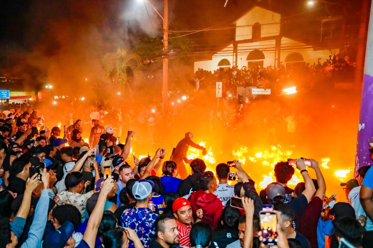 Con acompañantes salvadoreños y turistas, ayer por la noche, la Alcaldía de San Salvado Oeste, en Nejapa conmemoraron 103 años de su tradicional festival de las «bolas de fuego».