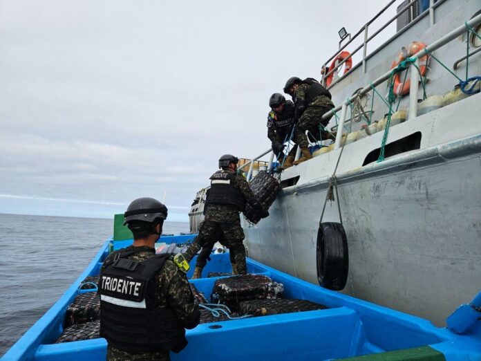 «Nuestra Marina Nacional interceptó, a 1,150 millas náuticas (2,130 km) de nuestras costas, una embarcación tripulada por tres narcotraficantes ecuatorianos», mencionó el mandatario en redes sociales.
