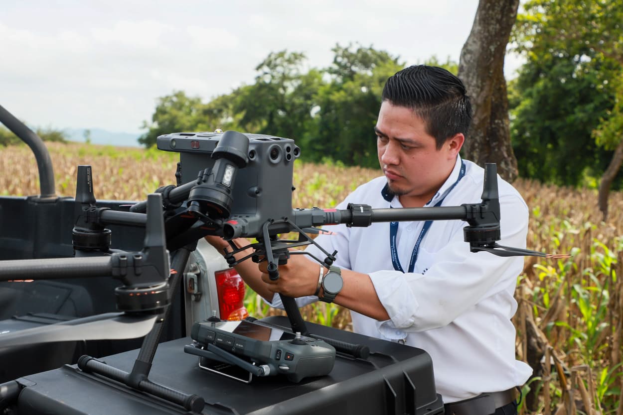 El MIRA cuenta con drones multiespectrales Matrice 350 RTK, con cámaras Micasense Red Edge –P de última generación y Videowall 3×3 metros, pantallas full HD; que dan fidelidad de la data. “El equipo nos permite generar imágenes multispectrales a través de la reflectancia de la luz. Nosotros podemos identificar el NDBI, que es un indicador del verde de la planta, por así decirlo, eso nos permite saber la salud de un cultivo en particular (…) Además de contar con este sistema, tenemos técnicos que hacen el abordaje de los modelos y análisis para realizar mejoras continuas, así como con nuestros pilotos de drones, que están entrenados también en el procesamiento de las imágenes y en la georreferencia”.