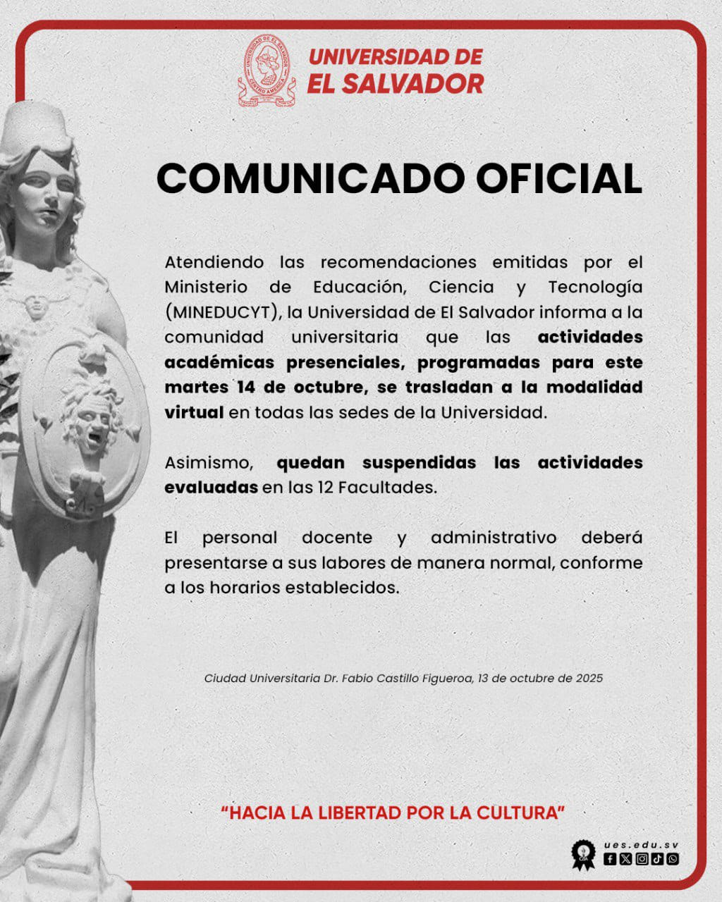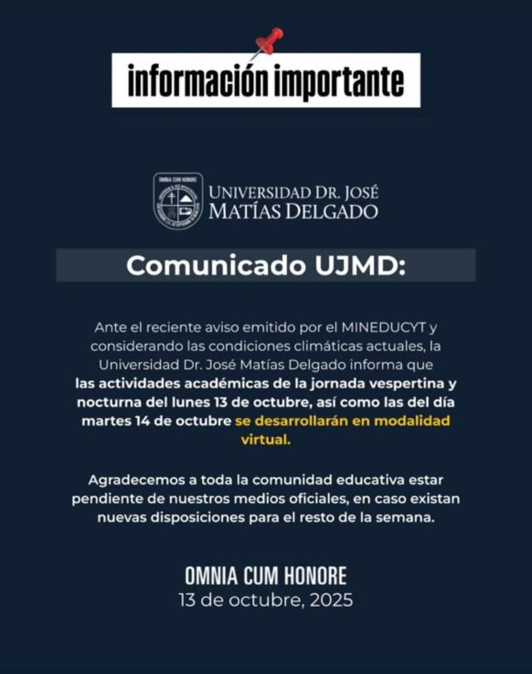 Entre las universidades que optarán por la modalidad virtual se encuentran: la Universidad Dr José Matías Delgado y la Universidad de El Salvador