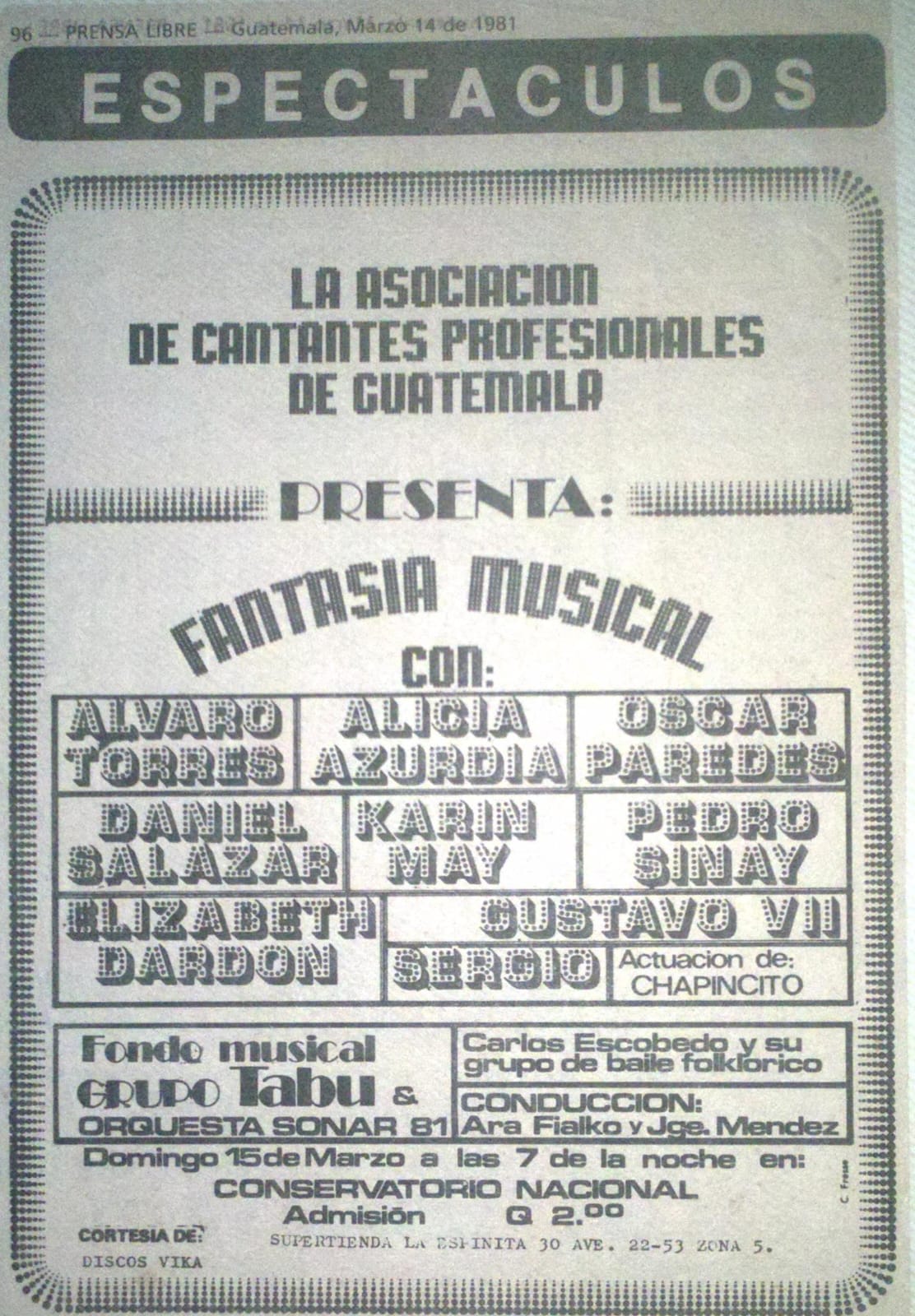 Ese mismo año fue elegido secretario de la Asociación de Cantantes Profesionales de Guatemala, cargo que ejerció durante siete años. Desde esa posición impulsó proyectos importantes, entre ellos: