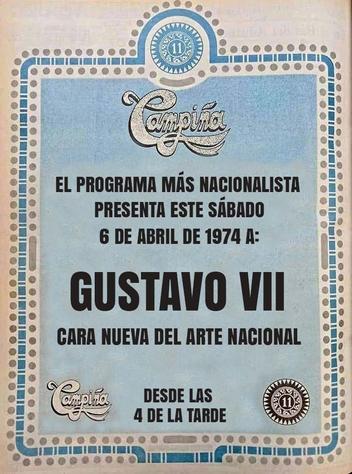 La historia profesional de Gustavo VII comienza el 6 de abril de 1974, cuando con apenas unos años de juventud fue presentado por Chalo Hernández en el programa televisivo Campiña de Canal 11. Ese día se convirtió oficialmente en la cara nueva del medio artístico guatemalteco, un honor que marcó el inicio de una carrera meteórica.