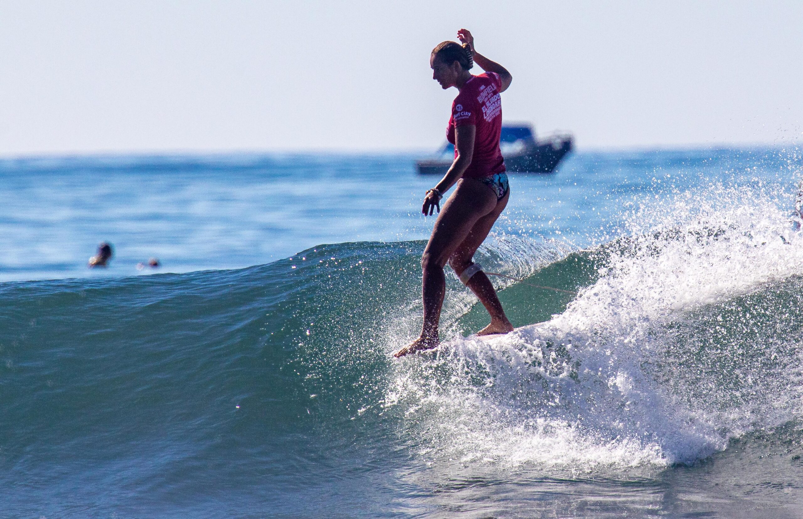Ocho mujeres e igual número de hombres conforman las escuadras en competencia por el título mundial de longboard. La hawaiana Honolua Blomfield es una de las figuras en este torneo.