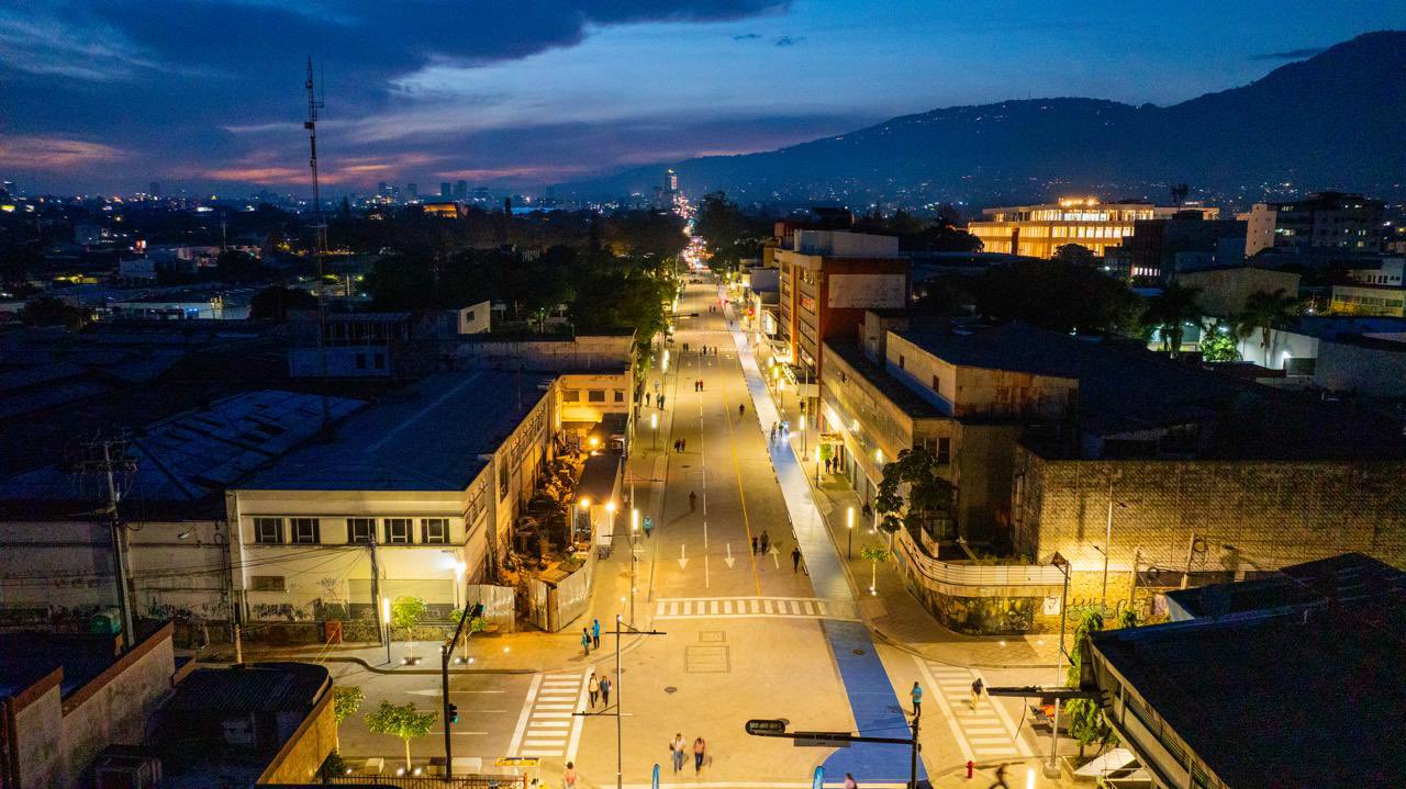 El proyecto “Corredor Urbano, Calle Rubén Darío, Centro Histórico de San Salvador” ha transformado completamente este espacio con aceras accesibles, cableado subterráneo, ciclovías, drenajes, paisajismo, mobiliario urbano e iluminación moderna, convirtiendo un antiguo corredor caótico e inseguro en un entorno ordenado, vibrante y acogedor.