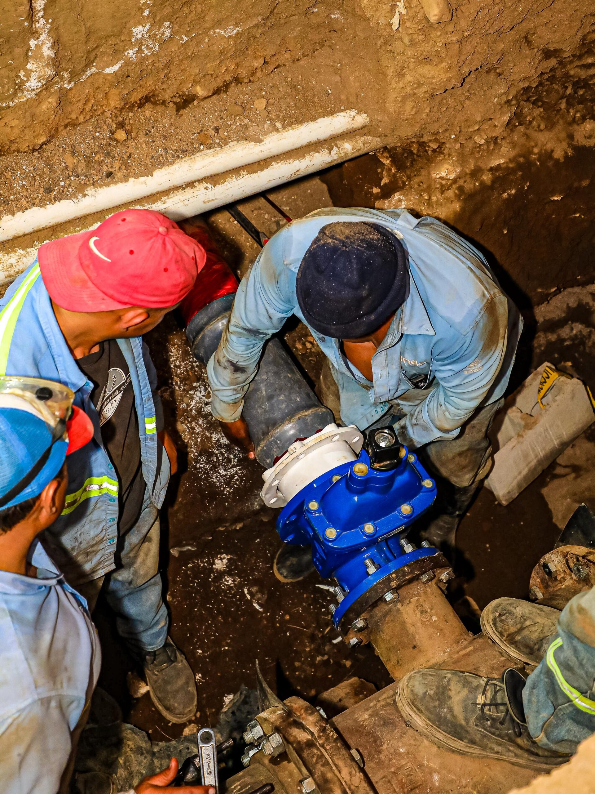 El personal técnico intervino en una tubería de hierro fundido con un diámetro de 14 pulgadas, a la cual se le conectará otro ducto de 6 pulgadas con lo que se llevará el servicio a la residencial Florencia y beneficiará a 300 viviendas.