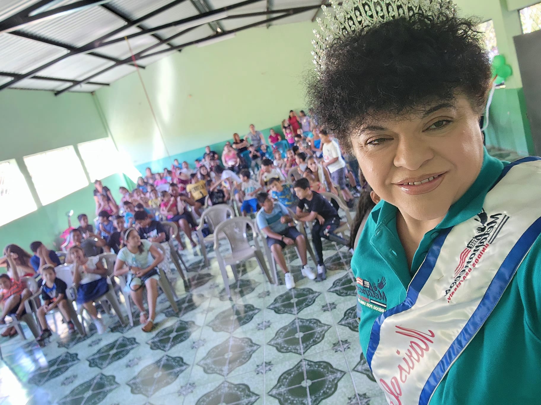 “Desde muy pequeña yo tenía el deseo de la actuación, de cantar… de participar en todo”, recuerda. Esa niña que se ofrecía para cada acto escolar no tenía idea de que, algún día, aquella chispa sería la misma que la impulsaría a servir, a representar y a abrazar a su gente dentro y fuera de El Salvador.